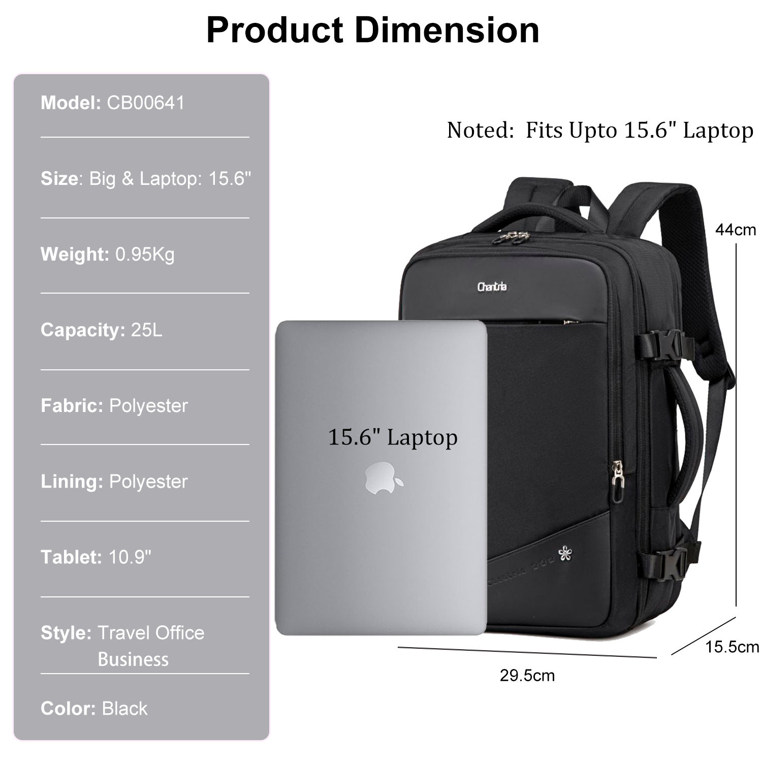 Laptop Size: Fits Upto 15.6"