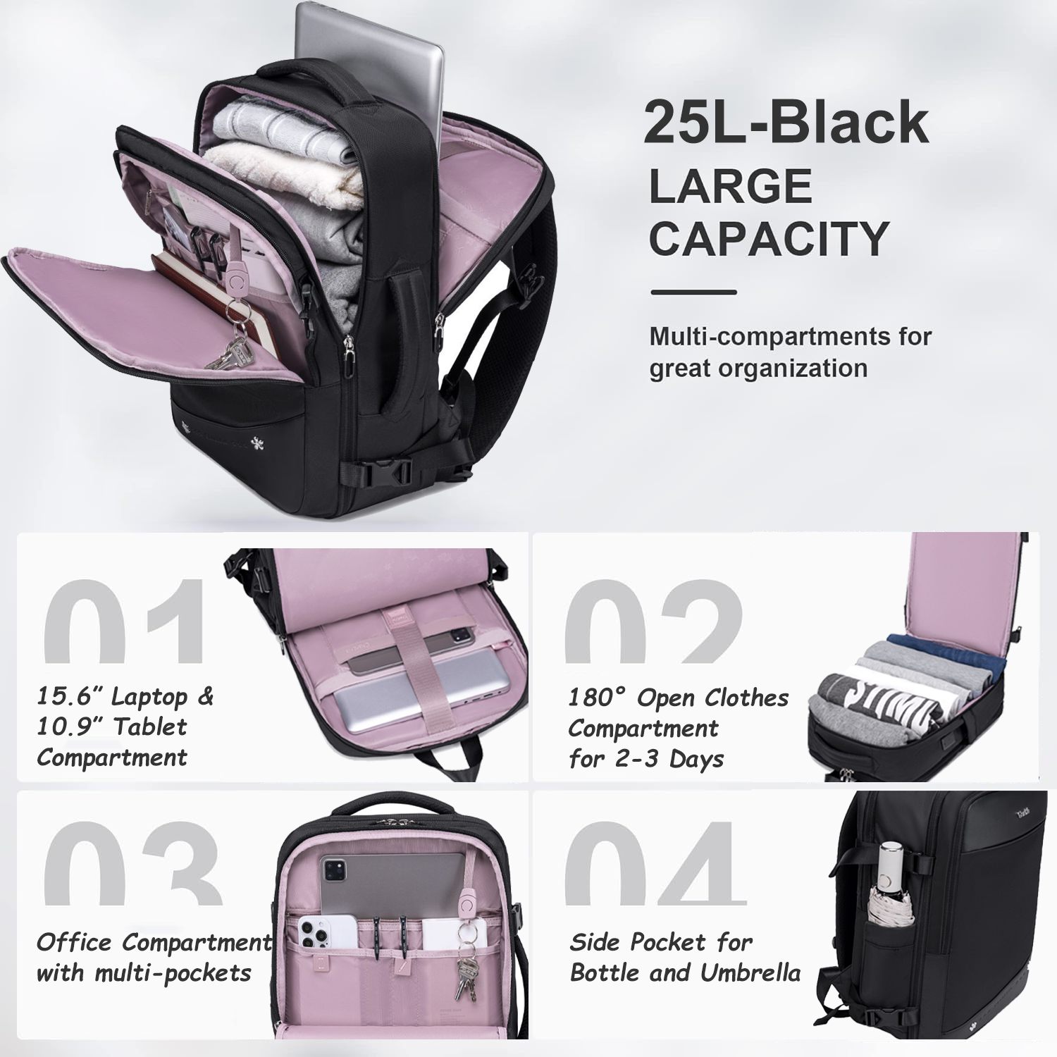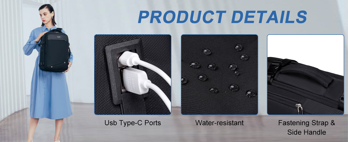 Features: Large, 180° Opening, Clothes Pocket, USB/Type-C Port