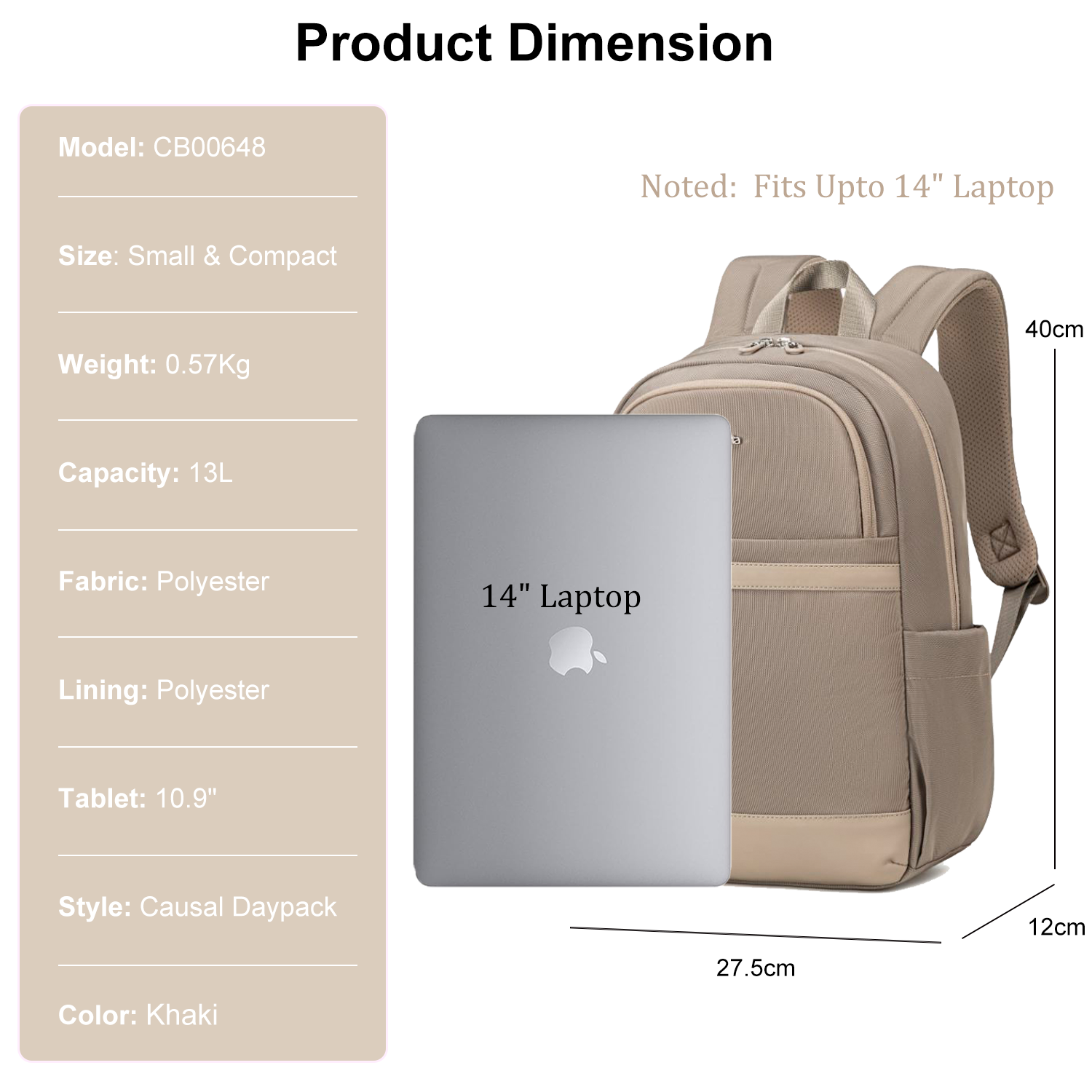 Laptop Size: Fits Upto 14"