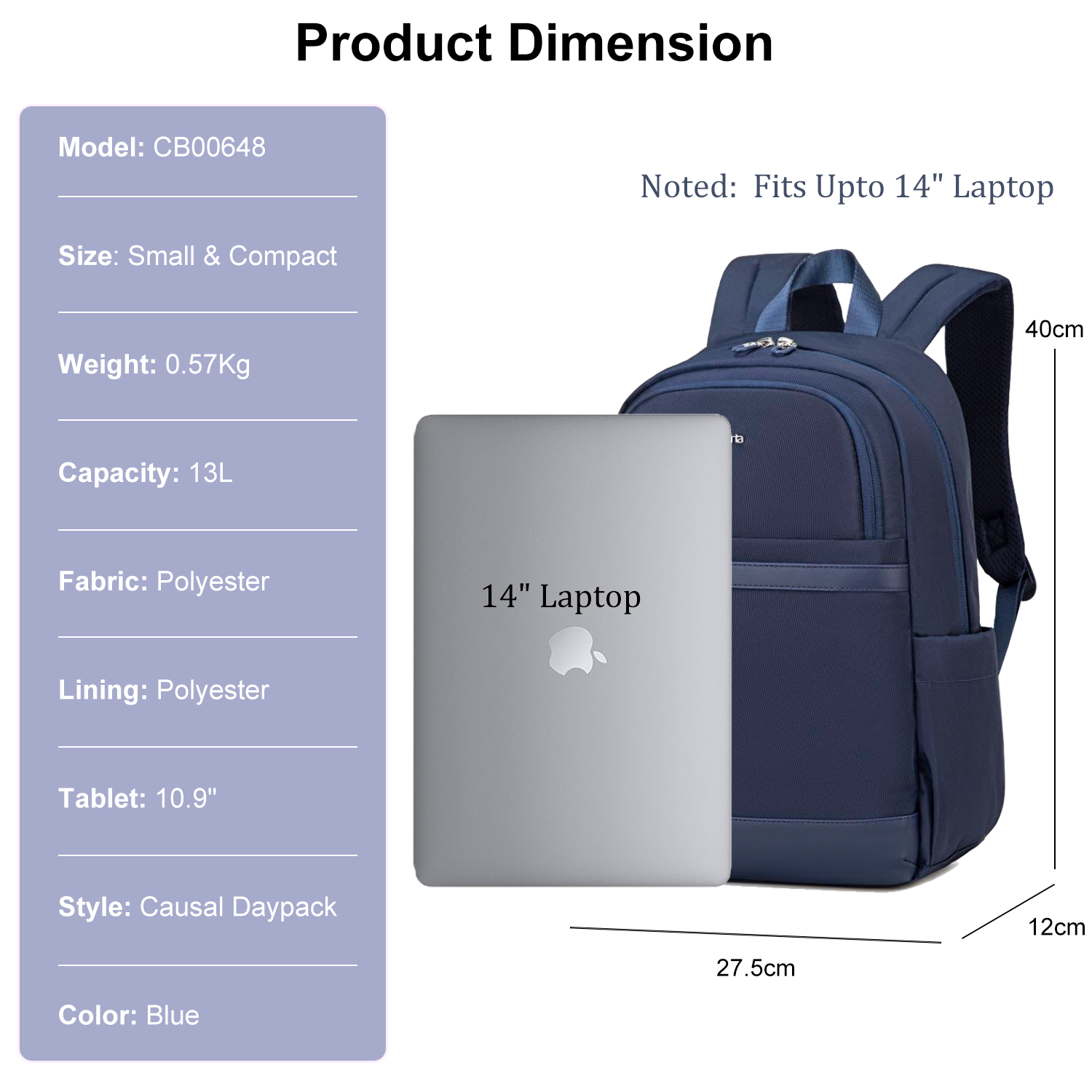 Laptop Size: Fits Upto 14"